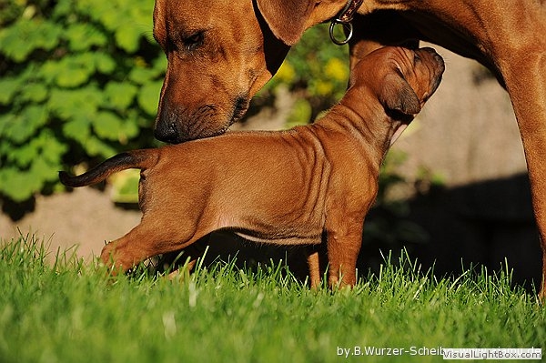 Nayeli und Amira sind nicht nur Schwestern, sondern richtig dicke Freundinnen, die einfach alles miteinander teilen - egal ob Körbchen oder Stöckchen :-) Die zwei haben auf unseren gemeinsamen Spaziergängen immer eine Mordsgaud, haben ununterbrochen den Turbo eingeschaltet und kriegen einfach nicht genug vom toben und rennen - waschechte Ridgebackteenies eben :-)