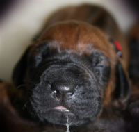 Brilliant Boma hat mit seinen Leuten zusammen die Cosmics besucht - wir finden, er gibt einen fantastischen großen Bruder ab, die Kleinen fanden ihn großartig und der eine oder andere Pöppel hat ihn regelrecht gestalkt :-) Sein Schweppesgesicht, als er an uns direkt bei der Begrüßung den ihhh-baahhh-Welpenduft entdeckt hat, war wirklich unbeschreiblich ;-) Aber er ist ganz easy und entspannt mit seinen winzigen, nervigen Halbgeschwisterchen umgegangen und für seinen ersten Auftritt als großer Bruder von vierzehn aufgeregt an ihm hochspringenden Wuselmäusen war er super cool :-) Wir sind stolz wie verrückt, das hat er toll gemacht! Danke an Boma´s Chefin Babsi für die tollen Fotos, trotz fiesem Gewitterwetter :-) |