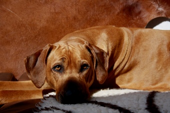 Nicht nur Nayeli hatte die Ehre, mal von einem Profi fotografiert zu werden, auch zwei unserer Cosmics durften schon Fotografen zeigen, dass Ridgebacks schon im Zwergenalter das Posing voll drauf haben :-) |