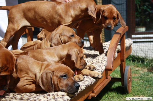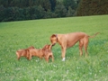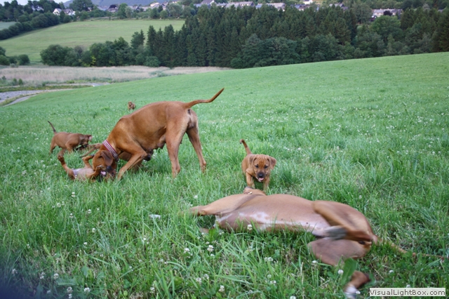 oder: ... 13 wilde, abenteuerlustige Wuselmäuse, eine Ridgebackmama, eine Ridgebacktante, ein Züchterpapa mit Kamera und eine Züchtermama mit gekochter Leber als Bestechungsmaterial ON THE ROAD :-)))))))