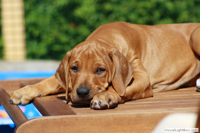 Echte Luxuswelpen sind sie, gechillt wird auf der Gartenliege...
