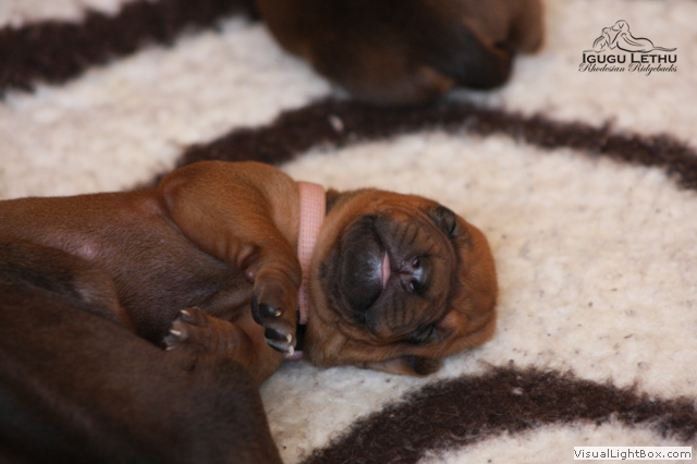 Nun schreiben wir schon Tag 10 im Leben unserer Divines und wir haben Stuuuuunden damit verbracht, sie dabei zu beobachten, wie sie ihre noch kleine Welt erkunden. Ja, das gehört ganz klar zu den beneidenswerten Privilegien eines Züchters und wir werden wie immer ohne mit der Wimper zu zucken damit angeben - da dürfen alle zu recht neidisch sein, denn die ersten Wochen im Leben der süßen Miniridgebacks miterleben zu dürfen, ist schon etwas ganz besonderes! Für Euch alle da draußen gibt es aber wieder viele Bilder :-) |