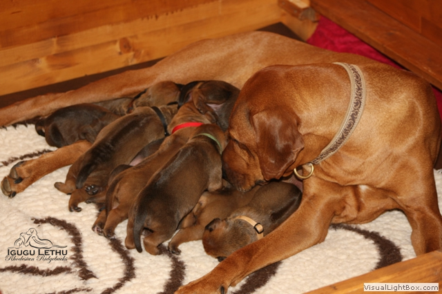 Nayeli hat 10 wunderschönen Miniridgebacks (5 Buben und 5 Mädels) das Leben geschenkt. Die Geburt verlief reibungslos. Keinerlei Stress oder Hektik in der Wurfkiste. Souveräner und instinktsicherer gehts einfach nicht!